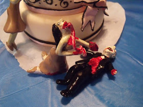Quick question: What do you get when you combine cake, zombies, a lawnmower, and a bride and groom? If you said one kick ass wedding cake with some undead cake toppers attacking a wedding party, then you would be correct! I know cake and zombies seem like an odd combination. I mean, one is yummy to eat and the other tries to eat you, but those are just minor details. Between reality tv shows about wedding planning and baking, plus zombies and other creatures from the horror genre becoming a larger part of pop culture; there should be no surprise that someone out there gets paid to make zombie themed cake toppers. A little over a year and a half ago I was introduced to an awesome lady that makes custom cake toppers that include zombies. Her name is Christen and she is the owner of Zombie Holocaust. I had a few questions for Christen and this is what I learned about her...